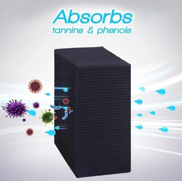 A tisztító ultra-abszorbens aktív szénből áll, amely egy mikroalagutakkal teli méhsejt szerkezetbe van csomagolva. Az erősen porózus anyag nagy felülettel rendelkezik, és hatékonyan elnyeli a mérgező szennyeződéseket a vízből. A légtisztító a nap 24 órájában működik. Fizikai tisztító tulajdonságainak köszönhetően működik. Nem igényel áramot és nem támaszkodik káros vegyi anyagokra;
