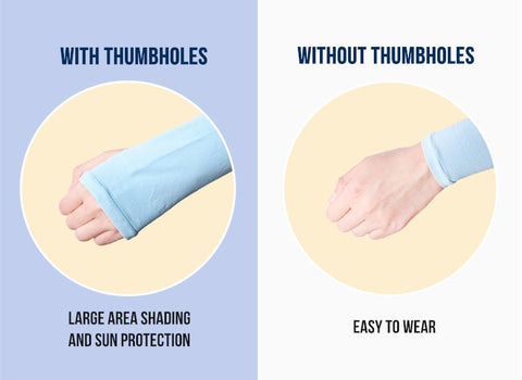 - Hüvelykujjnyílással: az ujj oldalán van egy nyílás a hüvelykujj számára. Ez a stílus lehetővé teszi, hogy a hüvelykujját átdugja az ujjon, és megvédje a kézfejét és a tenyerét, miközben a kar teljes hosszát lefedi a bicepsz területétől egészen az ujjpercekig. A hüvelykujjnyílás funkció használata nélkül is kényelmesen viselhető.
