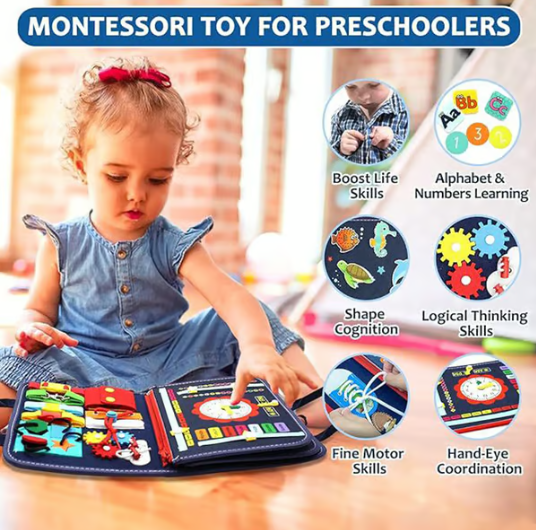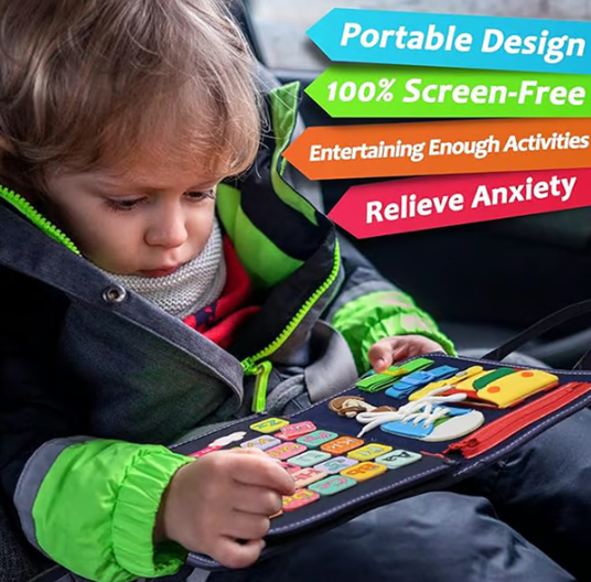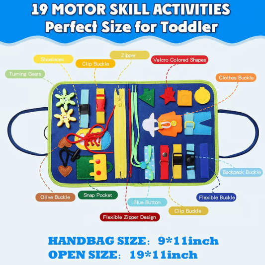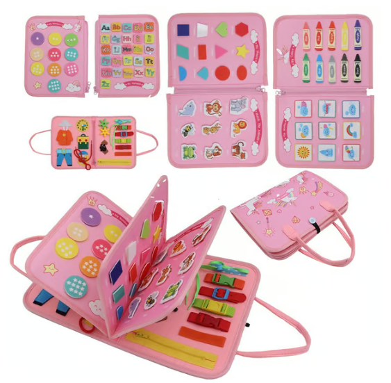 ✔︎ Változatos foglalkozások: Különböző tevékenységeket kínál, többek között cipzárakat, gombokat, kapcsokat, cipőfűzőket és sok más dolgot, amelyek felkelti a gyerekek kíváncsiságát és lekötik a figyelmüket.