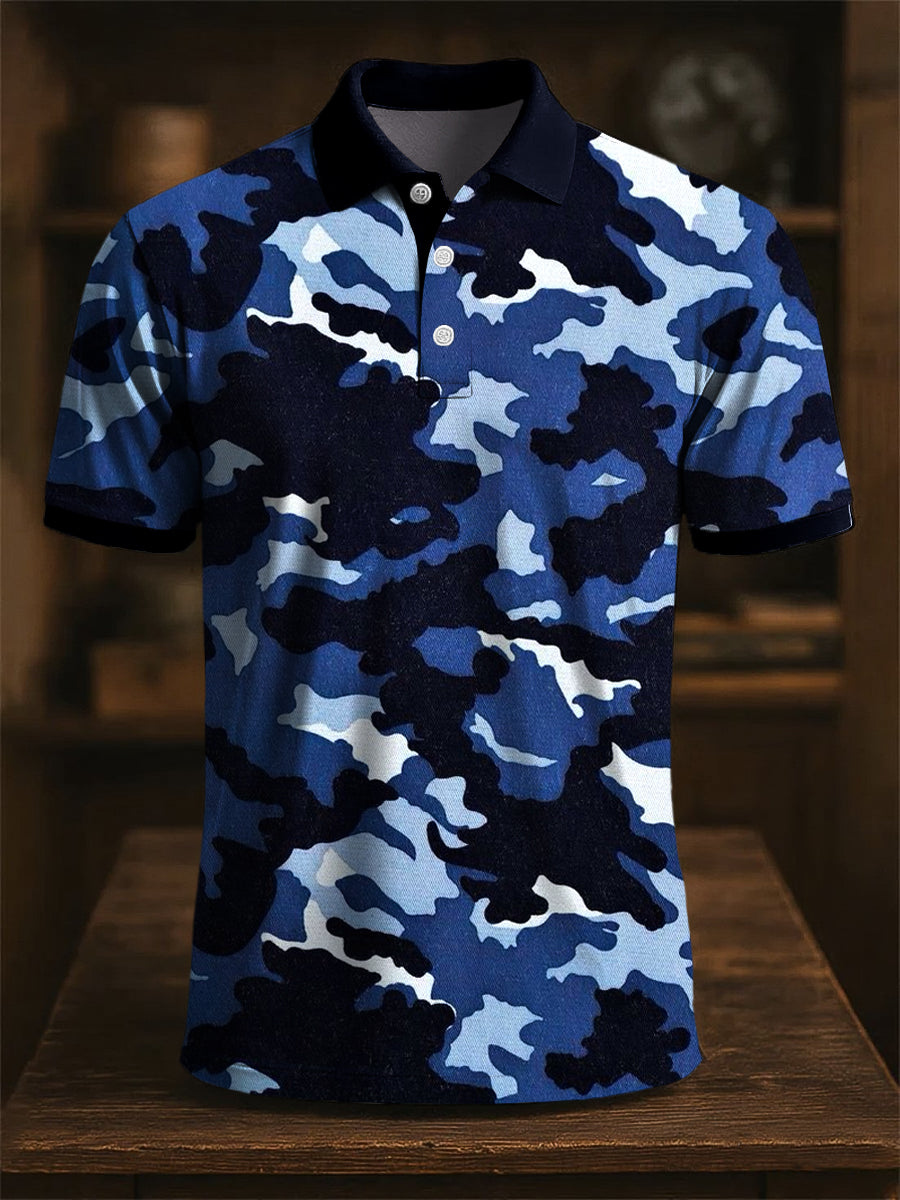 Férfi vintage absztrakt álcázás művészet nyomtatás alkalmi póló