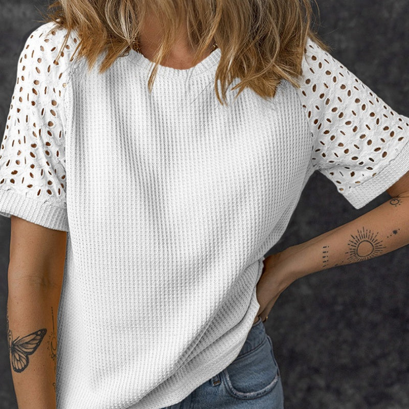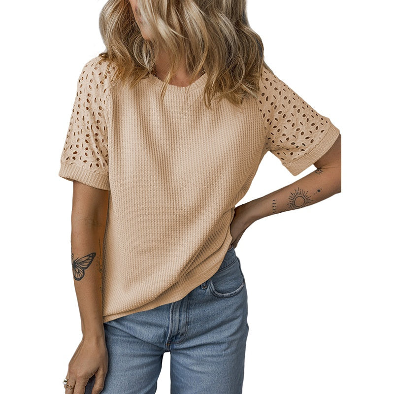 1 * Női alkalmi kerek nyakú rövid ujjú laza póló