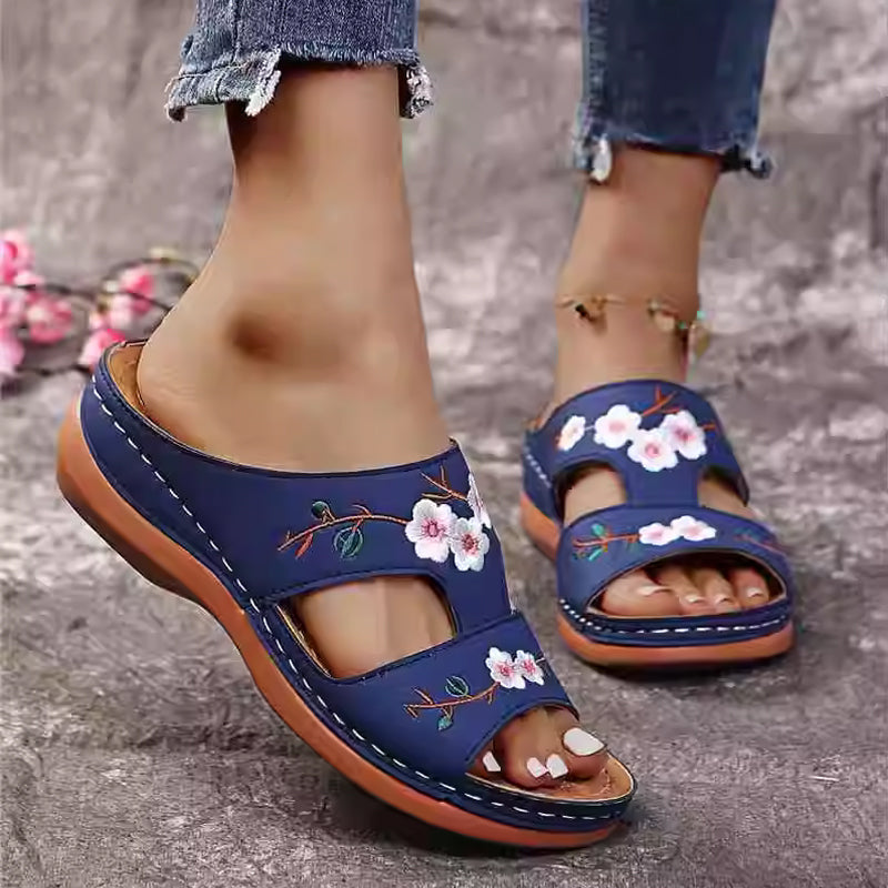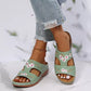 Pakiet zawiera:1 para * Wygodne damskie pantofle na koturnie z odkrytymi palcami na obcasie