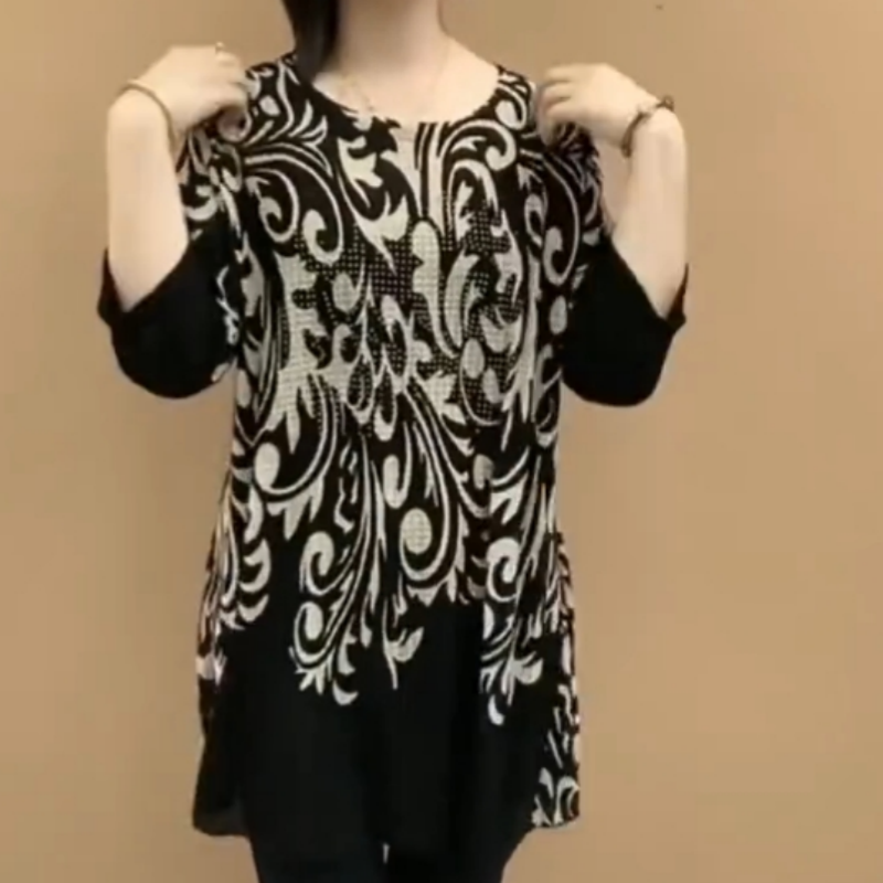 A csomag tartalmaz 1* Laza női felsőt kerek nyakkivágással.