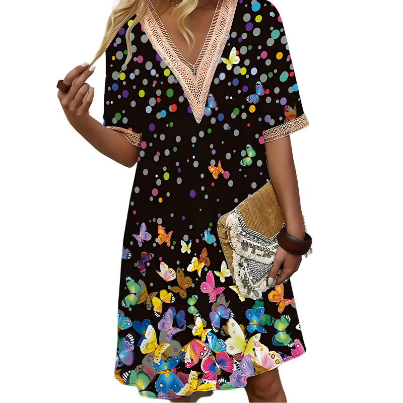 MŰVÉSZETI NYOMTATÁS: Minden ruha gondosan kidolgozott nyomtatással rendelkezik, amely mosás után sem fakul. A minta elhelyezkedése előnyös arányokat biztosít, stratégiai design elemekkel, amelyek karcsúsító hatást keltenek. A tömeggyártott nyomtatással ellentétben ez az egyedi design kiemelkedik, miközben elég sokoldalú ahhoz, hogy több alkalomra is viselhető legyen.