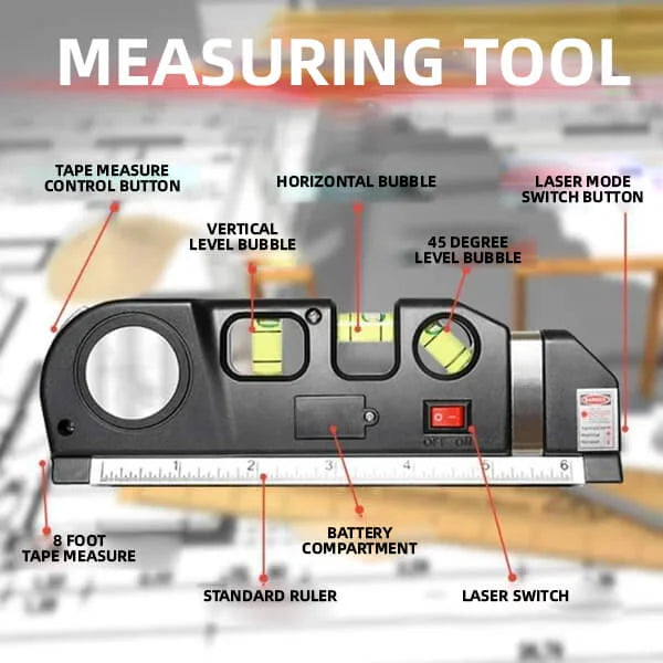 Ezzel a 4 az 1-ben lézeres szintező eszközzel a mérés egyszerű és pontos lesz. 📏
