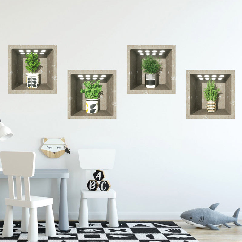 4 db cserepes dekoratív festmény falmatrica vagy 3 db cserepes dekoratív festmény falmatrica