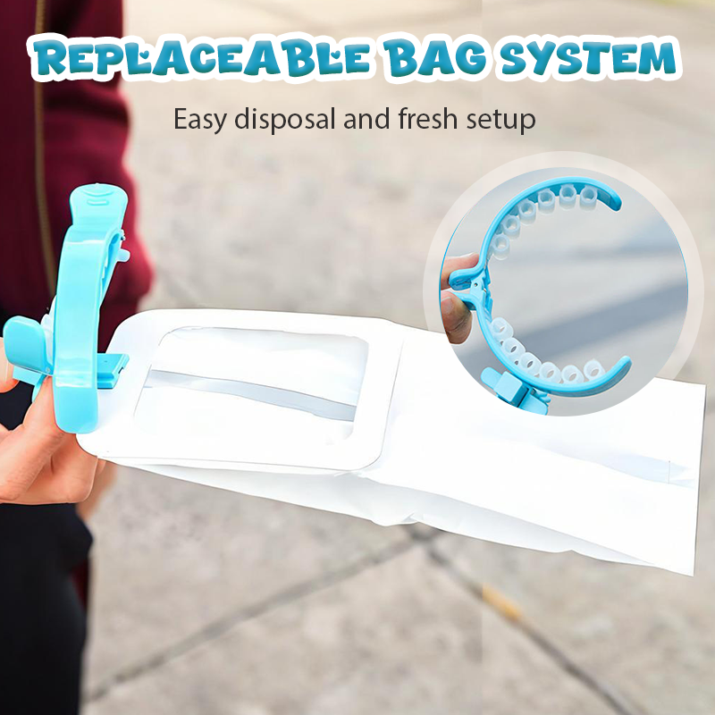 CSERÉLHETŐ ZSÁKRENDSZER - A készülék úgy lett kialakítva, hogy könnyen használható legyen eldobható zsákokkal, így a tisztítás hihetetlenül egyszerű. Csak vegye le a használt zsákot, dobja ki megfelelően, és tegyen fel egy újat a következő sétához.