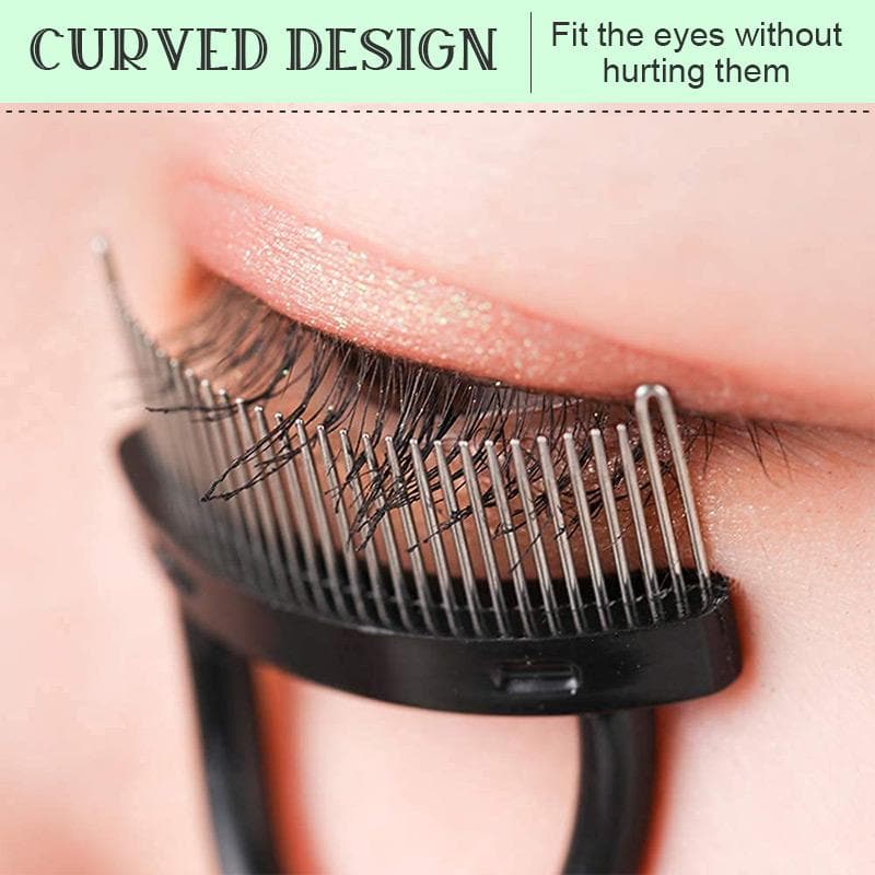 A hajlított fésű tökéletesen illeszkedik a szem kontúrjához, így minden alkalommal egyenletesen csúszik a szempillákon; a szempillák számára a fogak közötti távolság tökéletes.