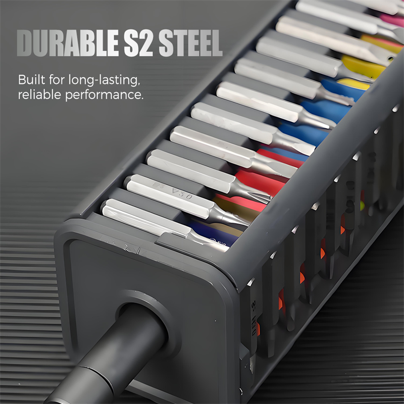 PREMIUM S2 ACÉL BITEK - A nagy keménységű S2 szerszámacélból készült bitek kivételes tartósságot és kopásállóságot biztosítanak. Ez garantálja a csavarokkal való pontos illeszkedést, megakadályozza a csavarok kifordulását és megbízható teljesítményt biztosít hosszú távú használat esetén.