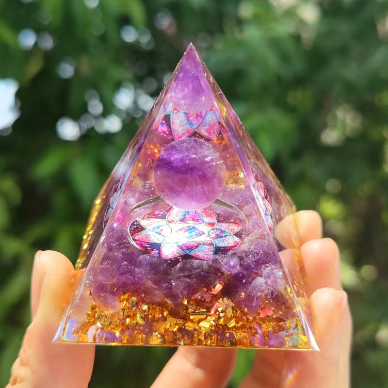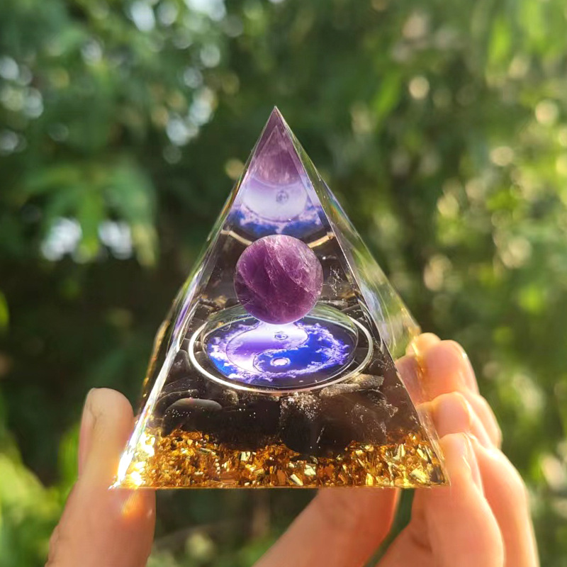 A csomag tartalma: 1×Piramis alakú műgyanta dekoráció zúzott kővel