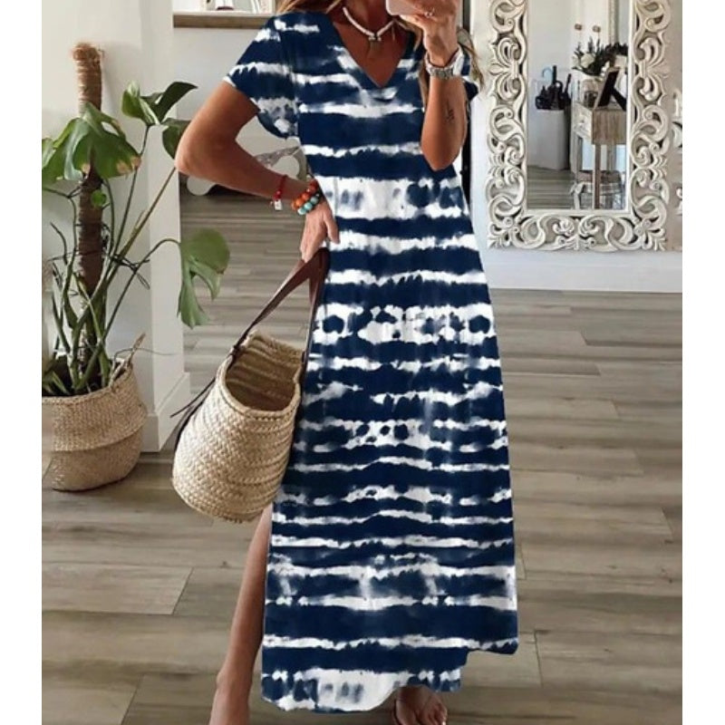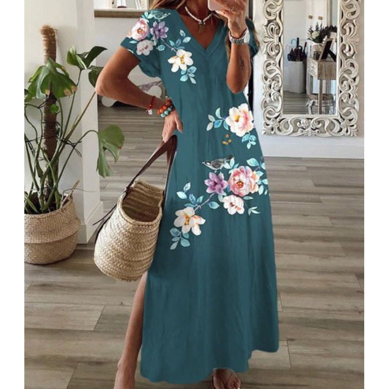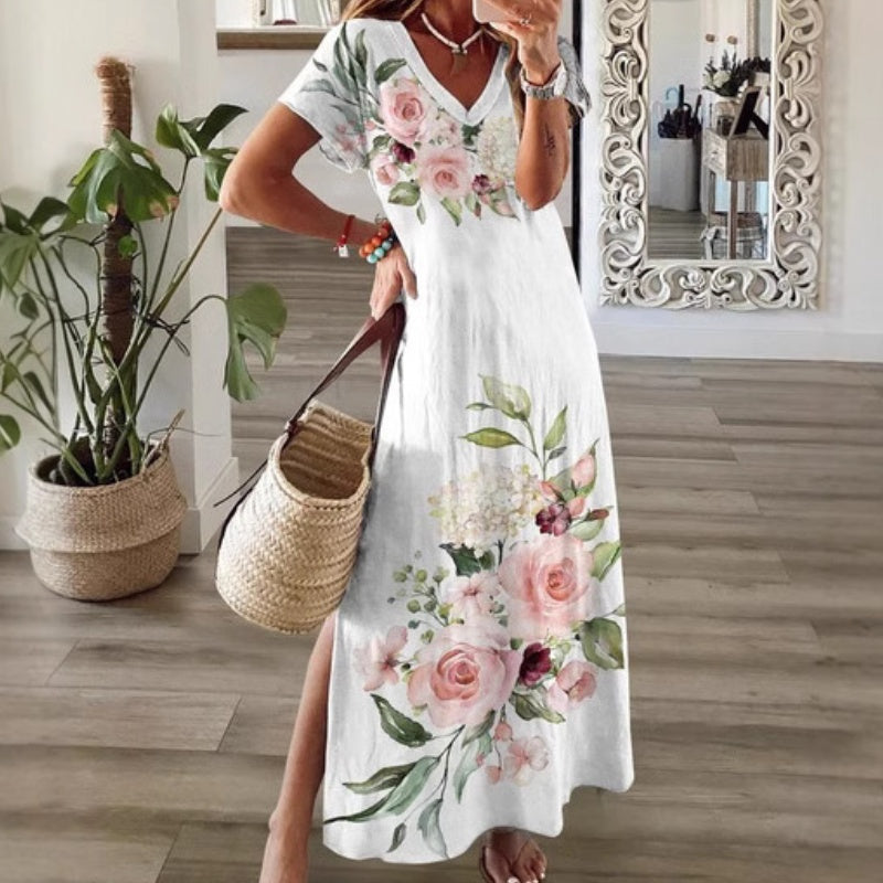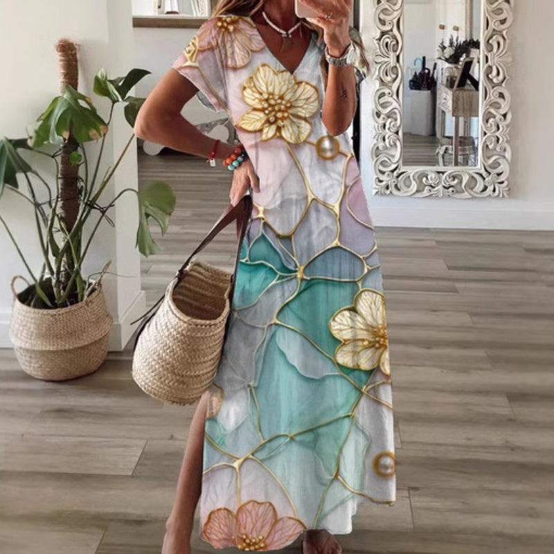 1 * Női virágmintás ruha hegyes nyakkivágással