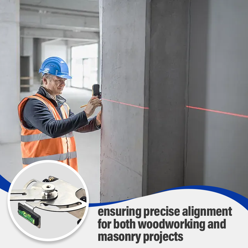 180 FOKOS SZABAD FORGATÁS A PONTOS IGAZÍTÁSHOZ: A szerszám sima, 180 fokos, állítható gombbal ellátott forgó mechanizmussal rendelkezik, amely lehetővé teszi a különböző feladatokhoz szükséges gyors szögbeállítást. Ez a kialakítás kiküszöböli a több szerszám szükségességét, időt takarít meg, miközben pontos igazítást biztosít mind a famegmunkálási, mind a kőműves projektekhez.
