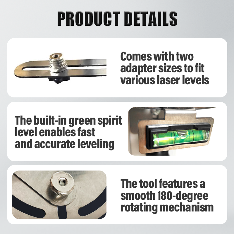 UNIVERZÁLIS KOMPATIBILITÁS A MELLÉKELT ADAPTEREKKEL: Két adaptermérettel rendelkezik, amelyek különböző lézerszintekhez illeszkednek, így sokoldalúan használható különböző eszközökhöz. A biztonságos rögzítési rendszer működés közben szilárdan a helyén tartja a lézert, megakadályozva a csúszást vagy a helytelen beállítást.