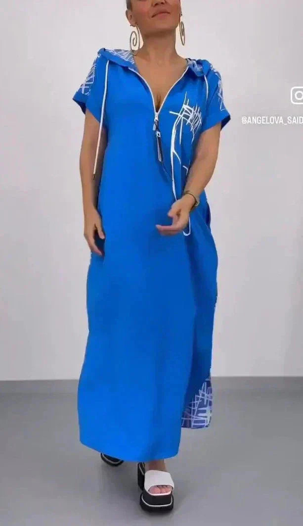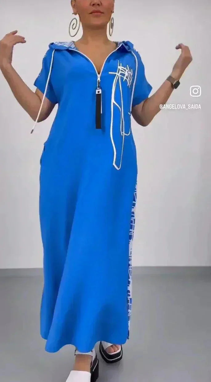 Ez egy szezonális újdonság! A cipzáras ruha kényelmes, elegáns és hosszú, és minden ruhatárban ott kell lennie. Ha stílusosan szeretne kinézni, ez a ruha kötelező darab.