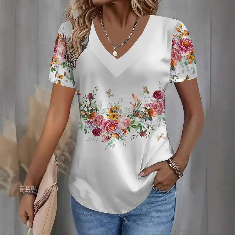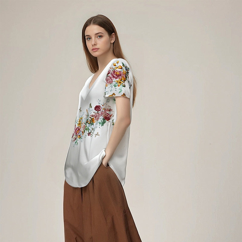 VIRÁGMINTÁS V-NYAKÚ DIZÁJN: Dobja fel alkalmi ruhatárát ezzel az elegáns női felsővel, amely élénk virágmintás és hízelgő V-nyakú. Az időtlen dizájn egy csipetnyi nőiességet kölcsönöz, így tökéletes a mindennapi viselethez, miközben stílusos és magabiztos marad.